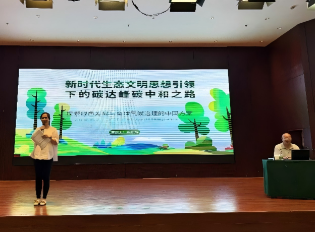 南昌大学朱乐辉教授作《新时代生态文明思想引领下的碳达峰碳中和之路》专题讲座。朱教授从生态文明思想出发,系统阐述了“双碳”战略的科学内涵和实施路径。他结合江西省情,深入浅出地讲解了碳达峰碳中和的关键技术及政策导向,并特别强调了基础教育在培养公民环保意识中的重要作用。